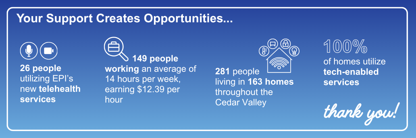 Your financial contribution means so much. Gifts are managed directly by Exceptional Persons, Inc. (EPI) and go toward supporting the greatest needs of the people we serve. Choose from these easy giving options: